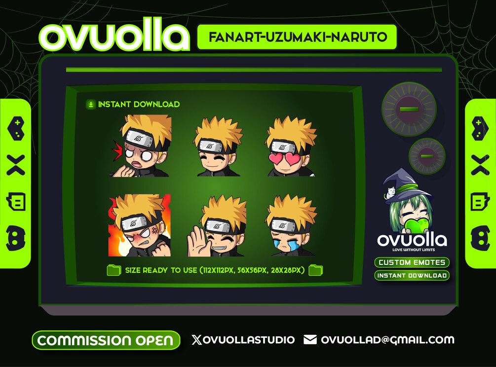 #OvuollaStudio #FanartEmotes #TwitchEmotes #DiscordEmotes #YouTubeEmotes #NarutoFanart #UzumakiNaruto #AnimeEmotes #StreamerAssets #CustomEmotes